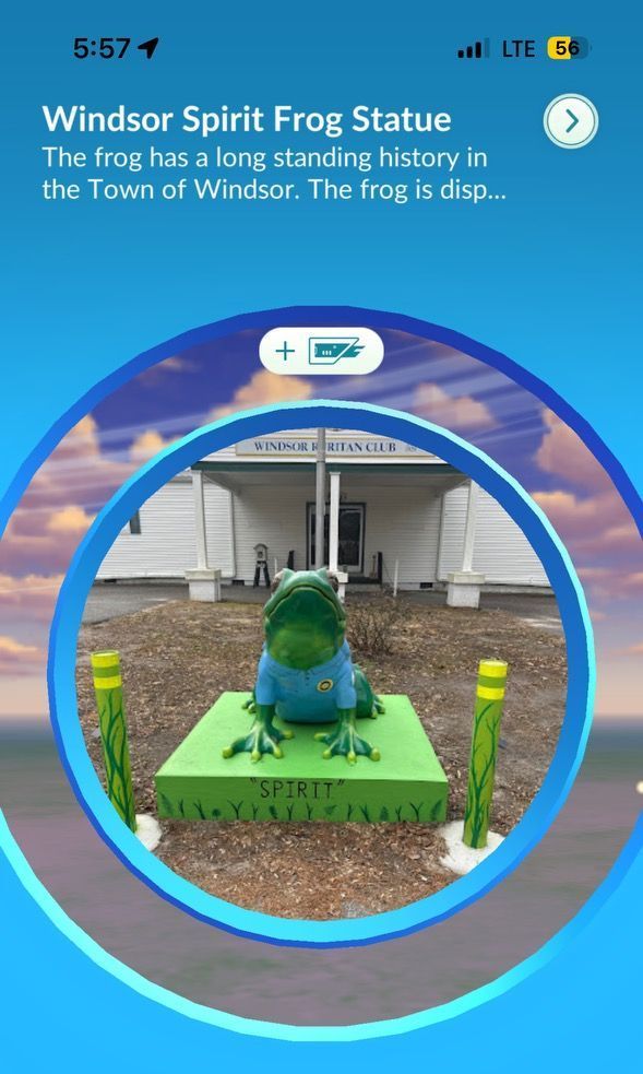 One of our newest projects is implementing the use of Pokemon-Go to make everyone aware of several historical and fun locations in the area. And if you haven't seen the newest frog in town, stop by the Windsor Community and take a look at SPIRIT, provided by the Windsor Ruritan Club and the Woman's Club, with the help of Dewitt Holland, who painted the frog. The S.P.I.R.I.T frog is a Pokestop. Now people can see it on a virtual map in-game, and when the person walks close enough to it they will be able to spin the frog picture and read the history written about it.