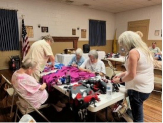 Barbara Barnes, former Health & Wellness Chairman, assisted by Club Member Karen Beale, prepared blankets ready to be tied at the club's April meeting. The blankets will be taken to Operation Smile and given to patients following surgery. Thirty blankets were prepared.